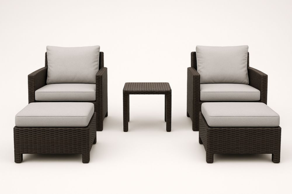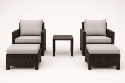 Set divano da giardino in rattan sintetico marrone con cuscini grigi
